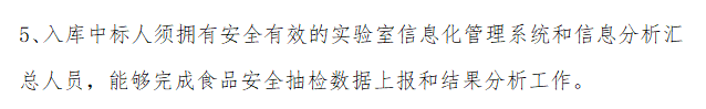 近日,全國多個省市的食藥監(jiān)管部門在政府委托檢測的招投標中,明確要求“投標方擁有安全有效的實驗室信息化管理系統(tǒng)”和“信息匯總?cè)藛T”,保證完成食品安全抽檢數(shù)據(jù)上報工作,沒有l(wèi)ims系統(tǒng)的檢測機構(gòu)將被直接排除在政府采購之外。