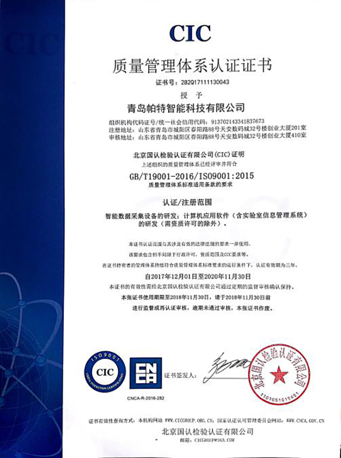青島帕特智能科技有限公司把質(zhì)量之根深植于企業(yè)發(fā)展全過程,把誠信之本貫穿于生產(chǎn)經(jīng)營的各個環(huán)節(jié),未來,我們將以繼續(xù)發(fā)揚文明誠信的工作作風(fēng),全心全意為檢驗檢測產(chǎn)業(yè)服務(wù)......